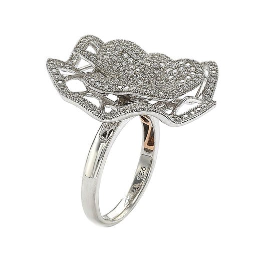 Suzy Levian Micro Pave Sterling Silver Cubic Zirconia Flower Ring