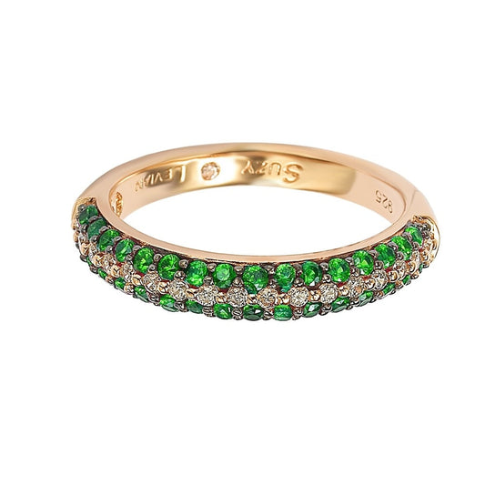 Suzy Levian Micro-Pave Green Cubic Zirconia in Rose Sterling Silver Stackable Band
