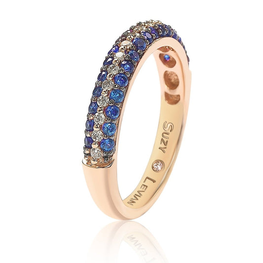 Suzy Levian Micro-Pave Blue Cubic Zirconia in Rose Sterling Silver Stackable Band