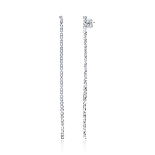 Suzy Levian Sterling Silver Cubic Zirconia White Line Long Dangle Earrings