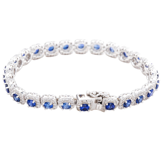 Suzy Levian Sterling Silver Oval-Cut Blue Sapphire And Diamond Accent Tennis Bracelet