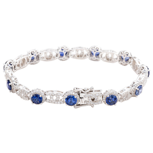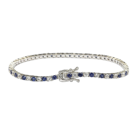 Suzy Levian Sterling Silver Round-Cut Blue And White Sapphire Tennis Bracelet