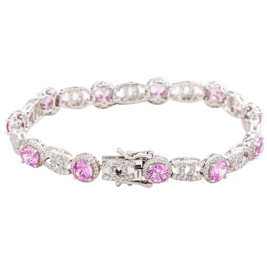 Suzy Levian Sterling Silver Cushion Cut Pink Sapphire and Created White Sapphire Tennis Bracelet