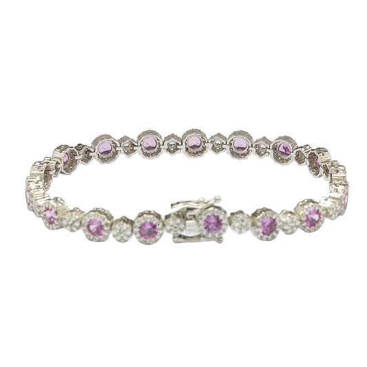 Suzy Levian Sterling Silver Pink Sapphire and Diamond Accent Bracelet