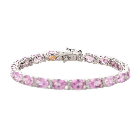 Suzy Levian Sterling Silver Oval-Cut Pink Sapphire And Diamond Accent Tennis Bracelet