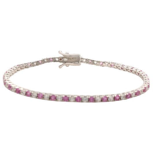 Suzy Levian Sterling Silver Round-Cut Pink And White Sapphire Tennis Bracelet