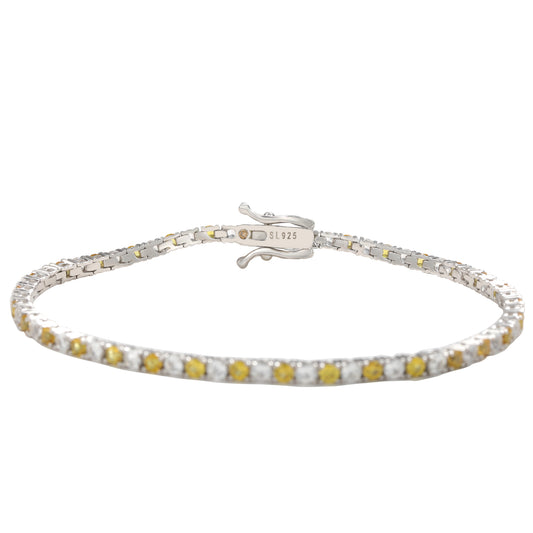 Suzy Levian Sterling Silver Round-Cut Yellow And White Sapphire Tennis Bracelet