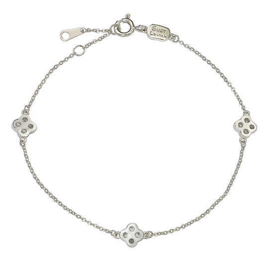 Suzy Levian 14K White Gold & .24 cttw Diamond Clover By the Yard Bracelet