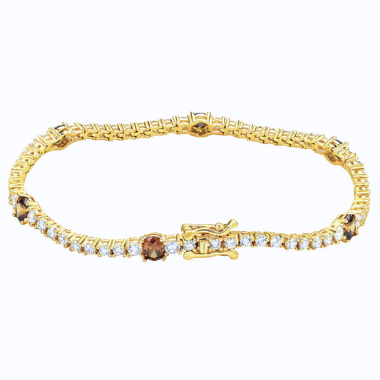 Suzy Levian Yellow Sterling Silver Brown and White Cubic Zirconia Tennis Bracelet