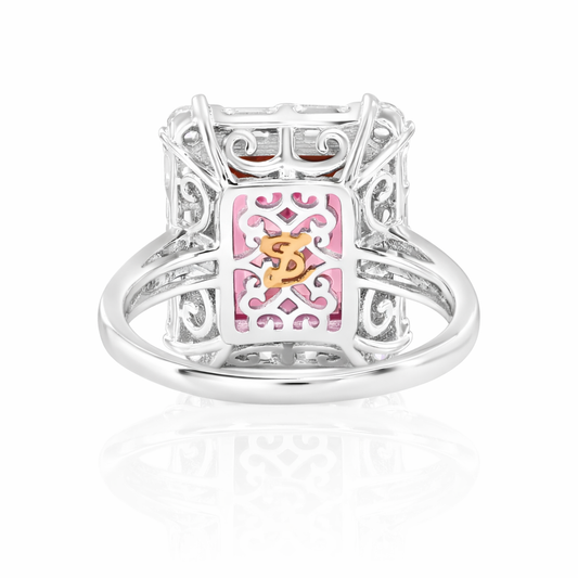 Suzy Levian Sterling Silver Emerald-Cut Pink Cubic Zirconia White Cubic Zirconia Ring