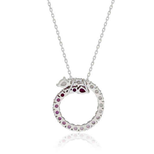 Suzy Levian Sterling Silver Pink Sapphire & Created White Sapphire Circle Journey Pendant Necklace