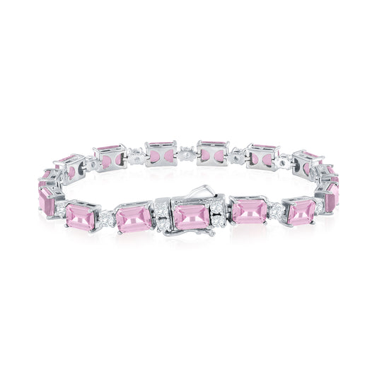 Suzy Levian Sterling Silver Gala Pink Emerald Cut White Cubic Zirconia Tennis Bracelet