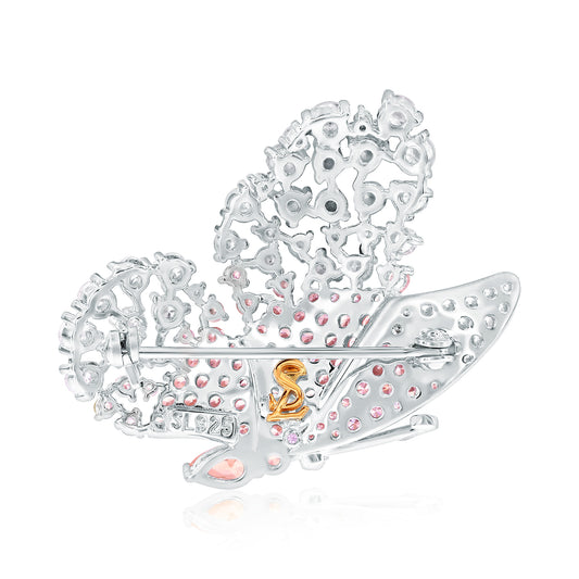 Suzy Levian Sterling Silver Pink & White Cubic Zirconia Oversized Butterfly Brooch