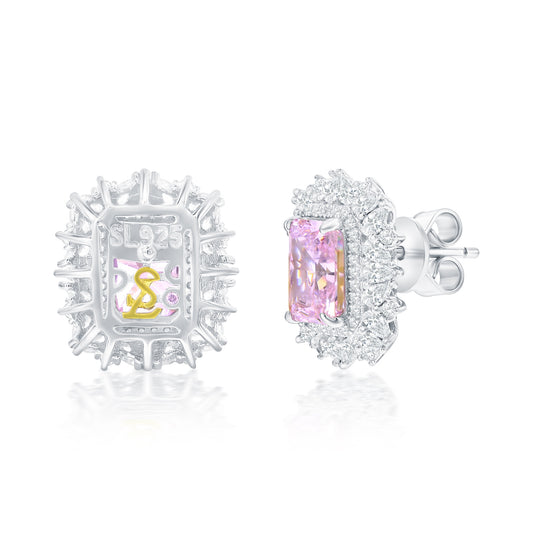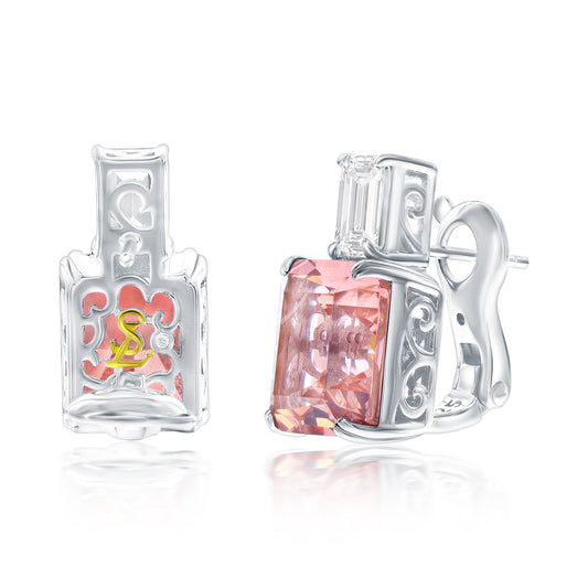 Suzy Levian Sterling Silver Gala Emerald Cut Pink & White Cubic Zirconia Earrings