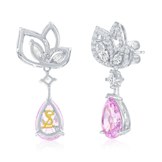Suzy Levian Sterling Silver Gala Firework Pink Pear Shape Cubic Zirconia Drop Earrings