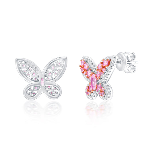 Suzy Levian Sterling Silver Gala Pink & White Cubic Zirconia Pave Butterfly Cluster Earrings