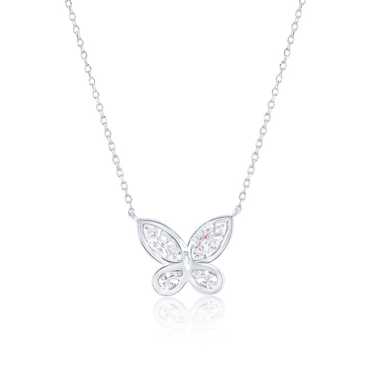 Suzy Levian Sterling Silver Gala Pink & White Cubic Zirconia Pave Butterfly Cluster Necklace