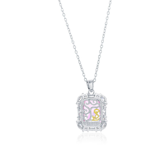 Suzy Levian Sterling Silver Gala Firework Emerald Cut Pink & White Cubic Zirconia Multi-Cut Pendant Necklace