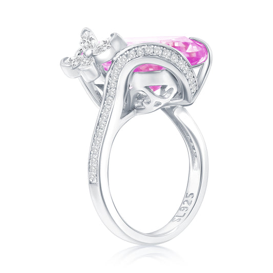 Suzy Levian Sterling Silver Gala Firework Elongated Cushion Cut Pink & White Cubic Zirconia Butterfly Ring
