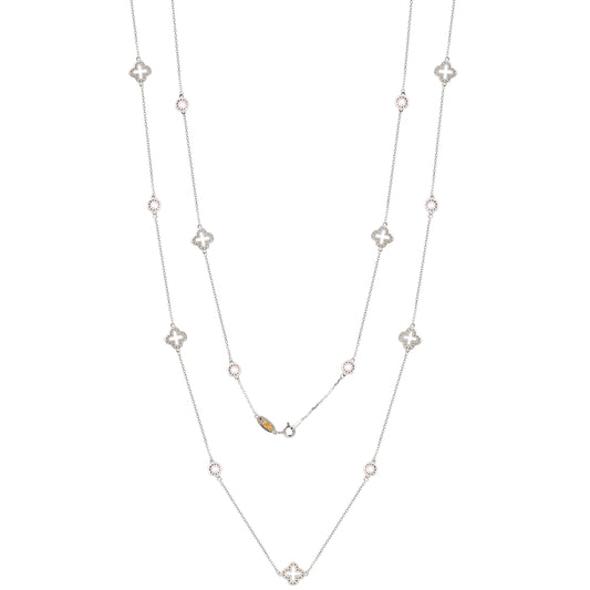 Suzy Levian Sterling Silver Pink Sapphire & Diamond Accent Station Necklace