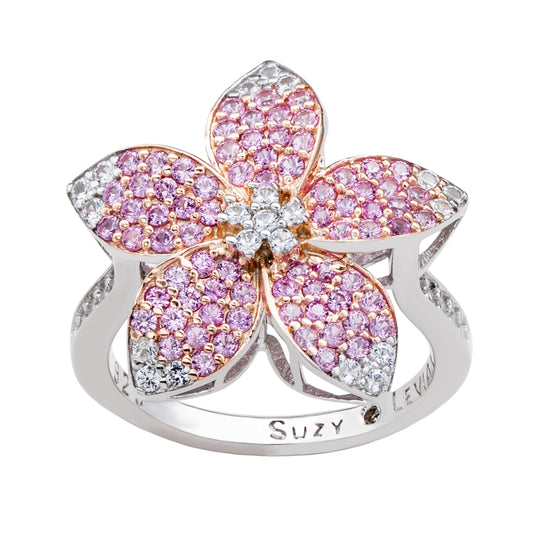 Suzy Levian Sterling Silver Pink Sapphire & White Sapphire Flower Ring