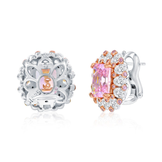 Suzy Levian Sterling Silver Gala Emerald Cut Pink & White Cubic Zirconia Multi-Cut Two-Tone Earrings