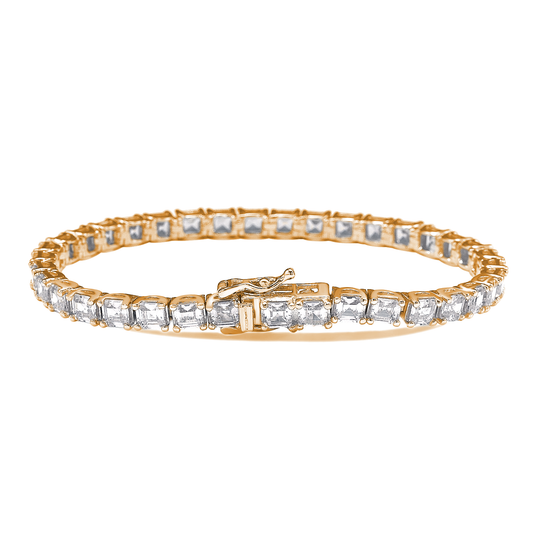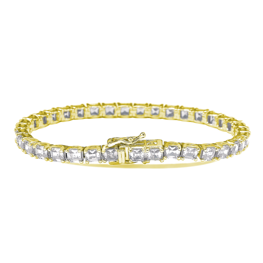 Suzy Levian Golden Sterling Silver White Assher Cut Cubic Zirconia Tennis Bracelet