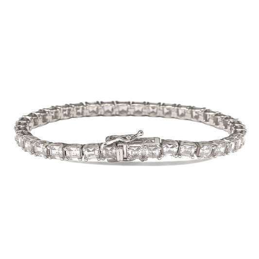 Suzy Levian Sterling Silver Assher Cut White Cubic Zirconia Tennis Bracelet