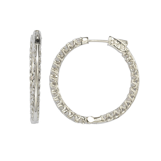 Suzy Levian Sterling Silver & White Cubic Zirconia Crossing Hoop Earrings