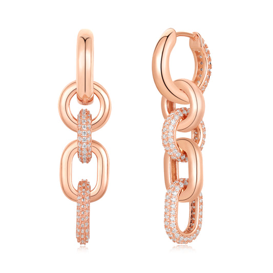 Suzy Levian Rose Sterling Silver White Cubic Zirconia Chain Link Drop Earrings
