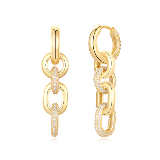 Suzy Levian Yellow Sterling Silver White Cubic Zirconia Chain Link Drop Earrings