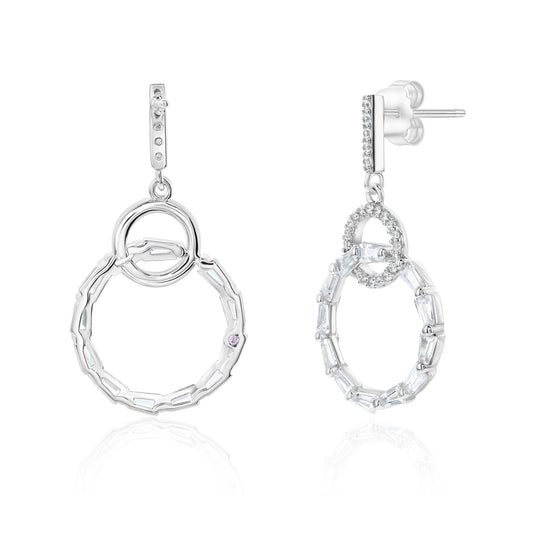 Suzy Levian Sterling Silver White Cubic Zirconia Interlocking Circle Drop Earrings