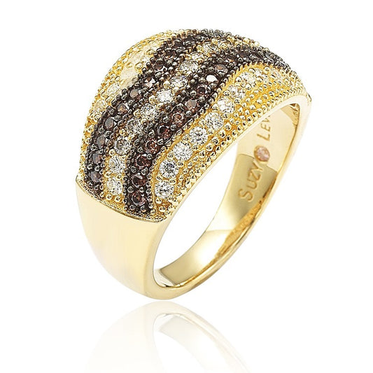 Suzy Levian Yellow Gold tone Sterling Silver Reddish Brown and White Cubic Zirconia Ring