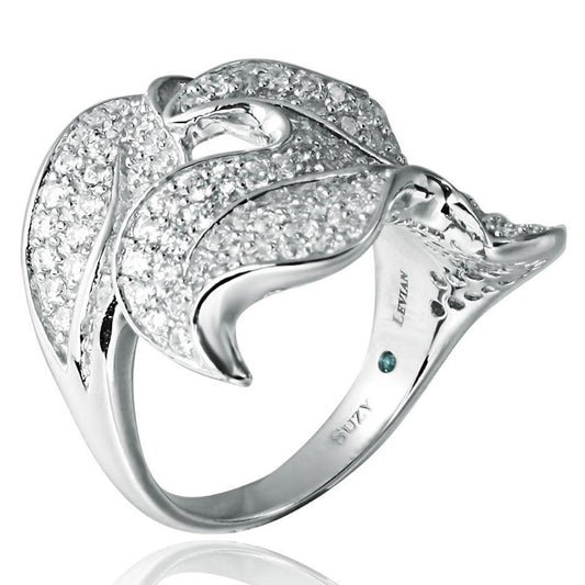 Suzy Levian Pave Cubic Zirconia Sterling Silver Leaf Ring