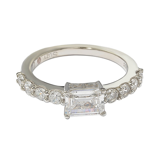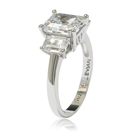 Suzy Levian Sterling Silver Emerald Cut 3.50cttw Cubic Zirconia 3-Stone Engagement Ring