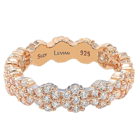 Suzy Levian Rose Sterling Silver Cubic Zirconia Floral Eternity Band