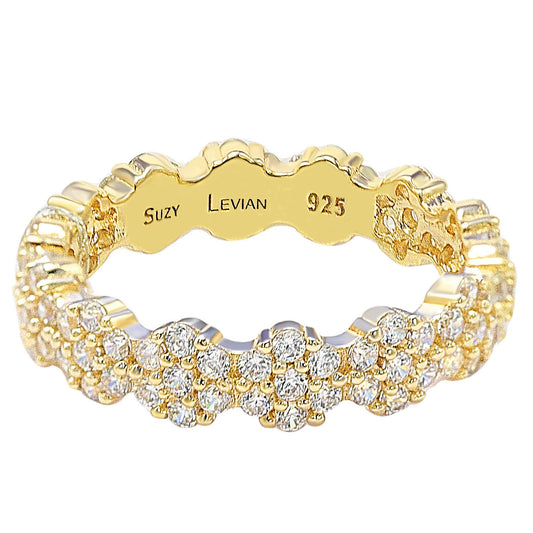 Suzy Levian Golden Sterling Silver Cubic Zirconia Floral Eternity Band