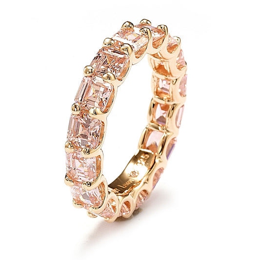 Suzy Levian Rosed Sterling Silver Pink Cubic Zirconia Asscher Cut Eternity Band