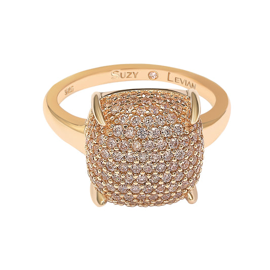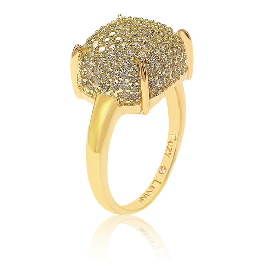 Suzy Levian Pave Yellow Cubic Zirconia in Golden Sterling Silver Ring