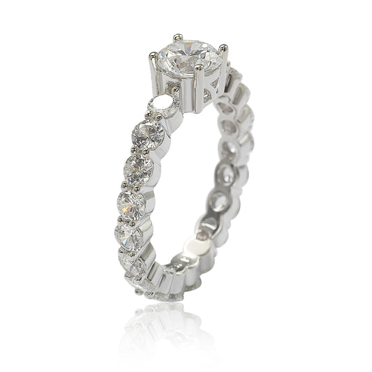 Suzy Levian Sterling Silver Cubic Zirconia Crossing Setting Eternity Band