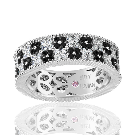 Suzy Levian Sterling Silver Black and White Cubic Zirconia Floral Eternity Band