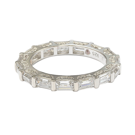 Suzy Levian Rose Sterling Silver Cubic Zirconia White Baguette Modern Eternity Band