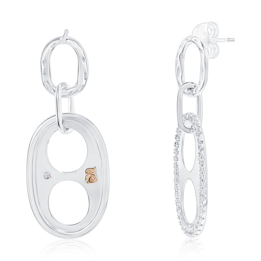 Suzy Levian Sterling Silver White Cubic Zirconia Oval Double Circle Drop Earrings