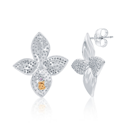 Share Suzy Levian White Sterling Silver White Cubic Zirconia Pave Abstract Flower Petal Earrings