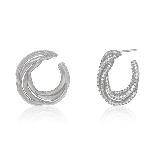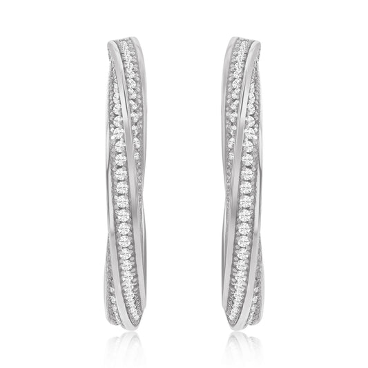 Suzy Levian Sterling Silver & White Cubic Zirconia Pave Twisted Hoop Earrings