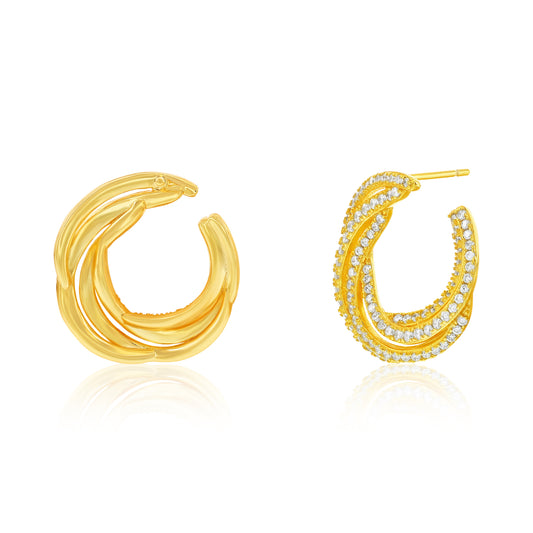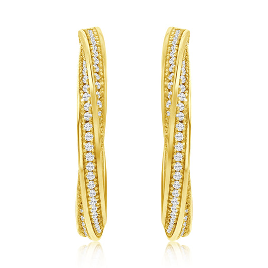 Suzy Levian Yellow Sterling Silver & White Cubic Zirconia Pave Twisted Hoop Earrings