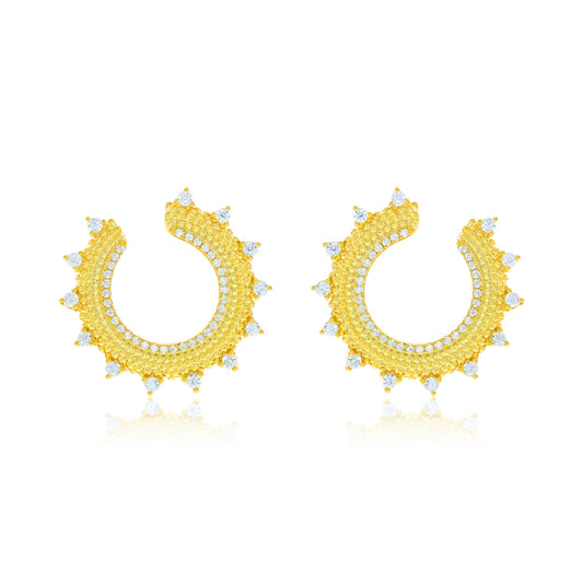 Suzy Levian Yellow Sterling Silver White Cubic Zirconia Open Sunburst Circle Earrings