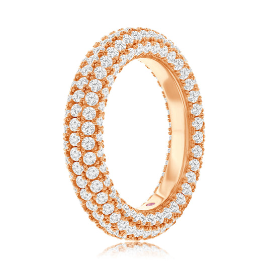 Suzy Levian Rose Sterling Silver Cubic Zirconia Pave Round Eternity Band