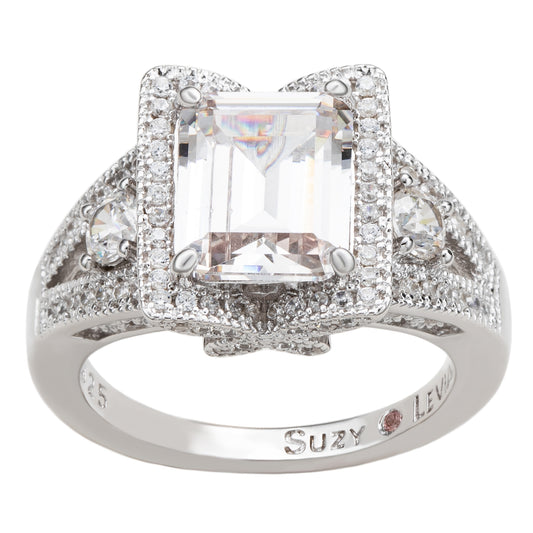 Suzy Levian Sterling Silver White Emerald Cut Cubic Zirconia Pave Engagement Ring