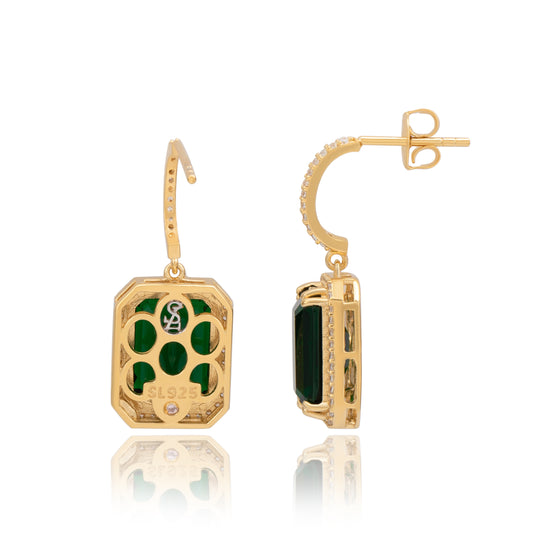 Suzy Levian Yellow Sterling Silver Emerald Cut Green White Cubic Zirconia Halo Dangling Earrings